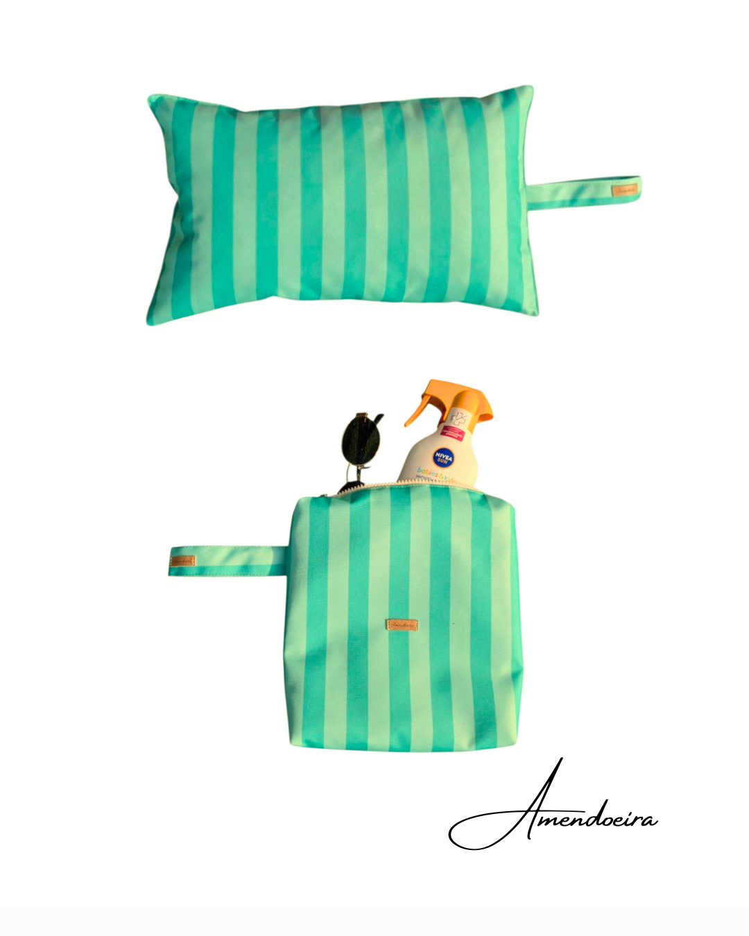 Almofada de praia/piscina- Riscas turquesa e verde