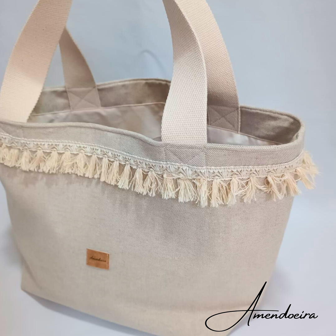 Feita à mão com estilo Boho com tecido linho Alentejano no exterior ecom forro 100% algodão.
