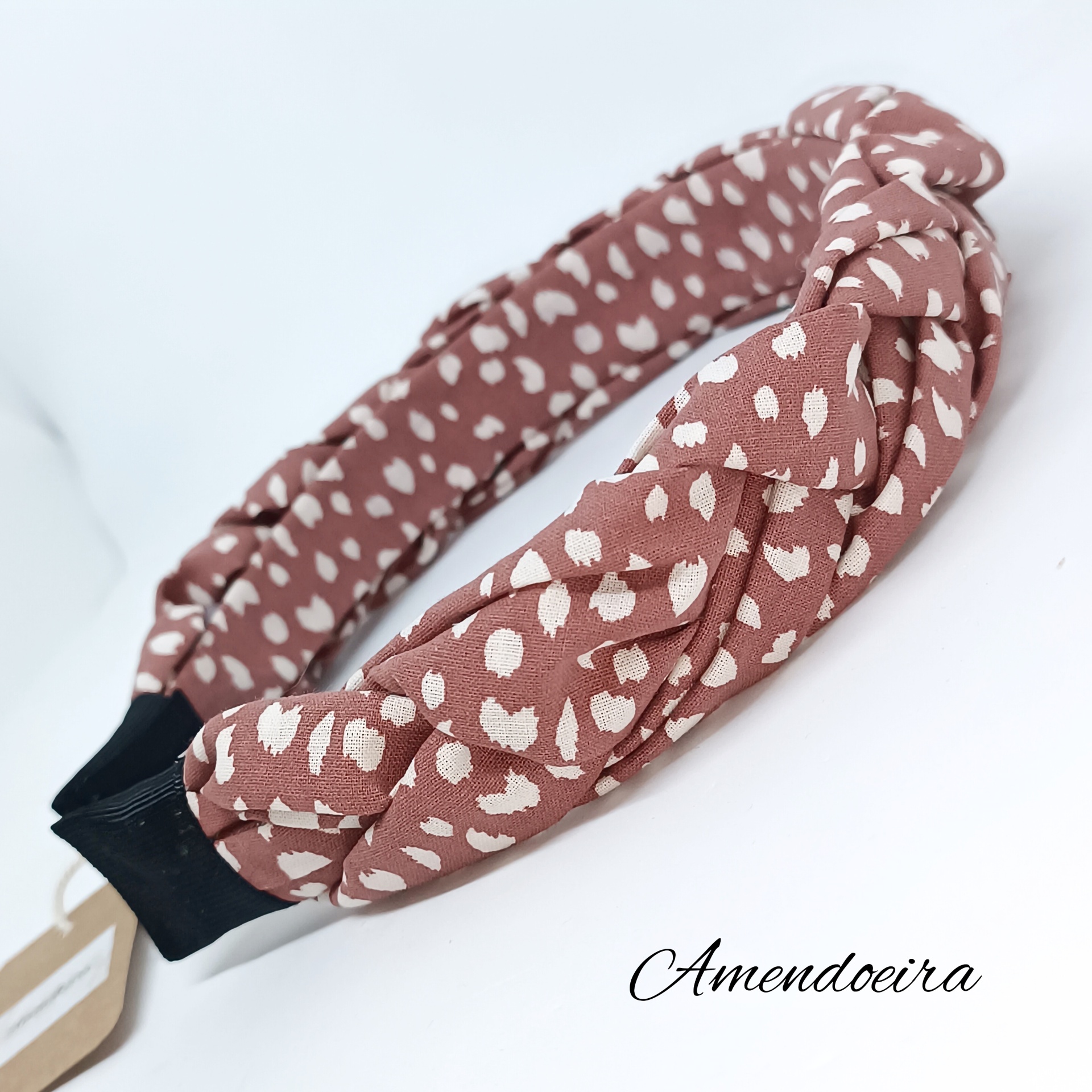 Bandolete trançada - Animal print - Malva leopard nas cores malva e bege muito clarinho