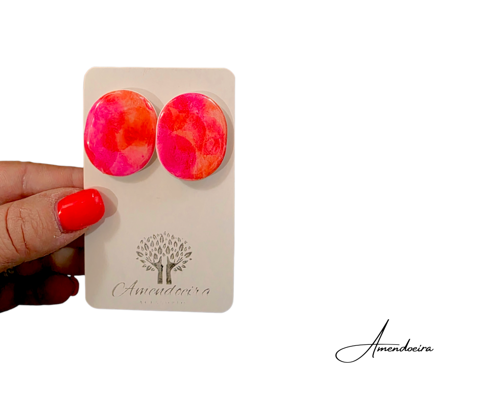 Inspirados nas cores vibrantes de um nascer do sol, os Brincos Dália destacam-se pelos seus tons quentes de rosa e laranja, que se fundem de forma única em cada peça.