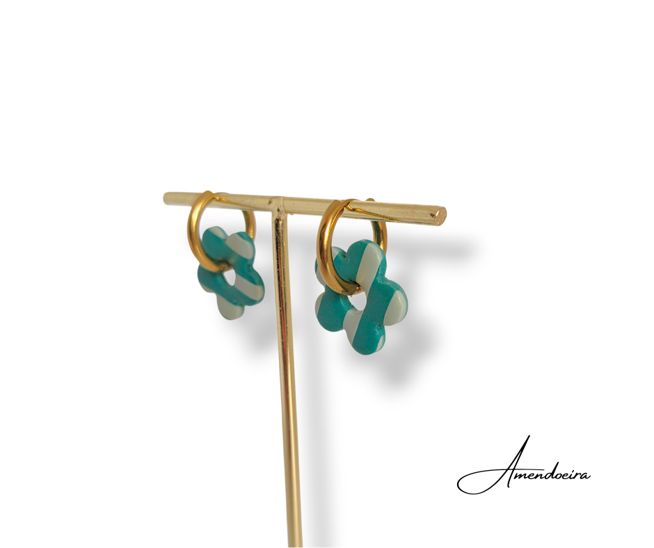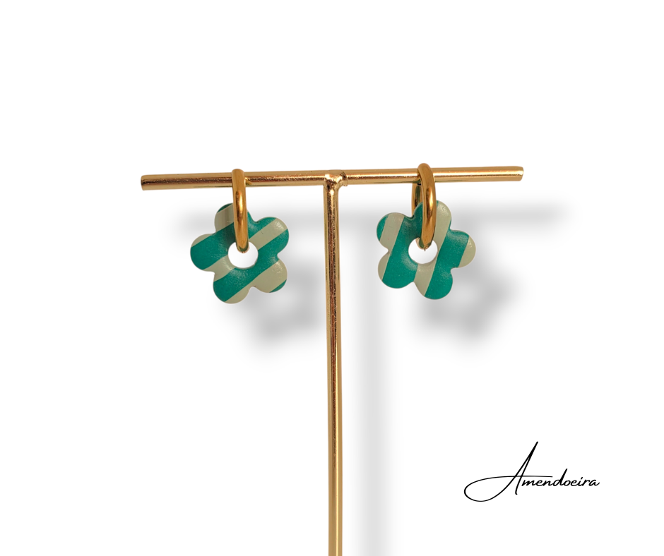 Brincos Flor Serena - Riscas verde e verde menta