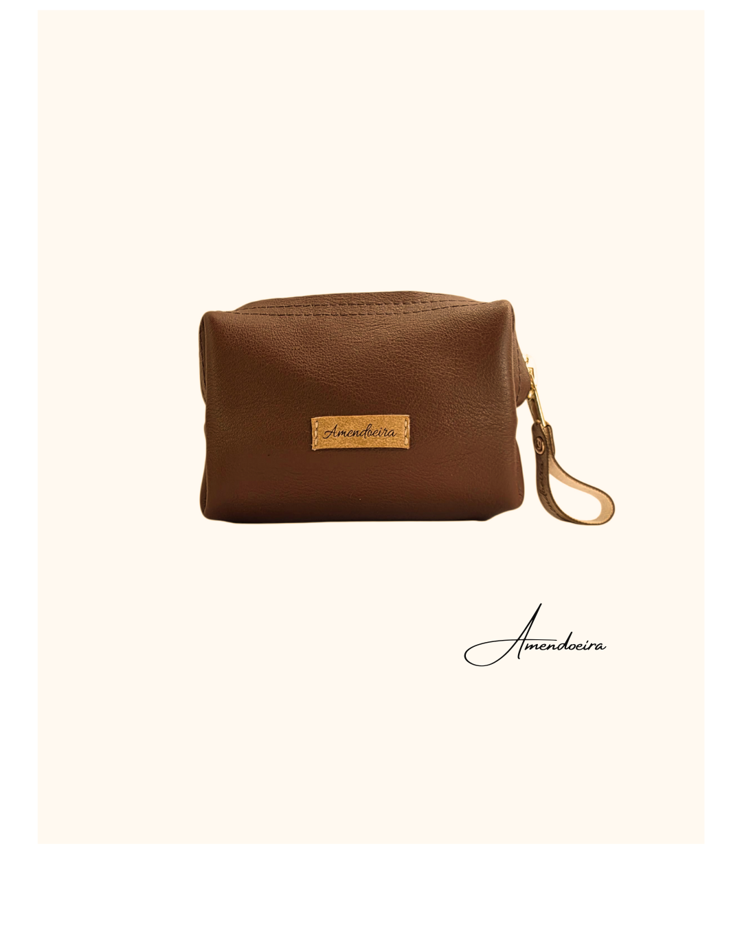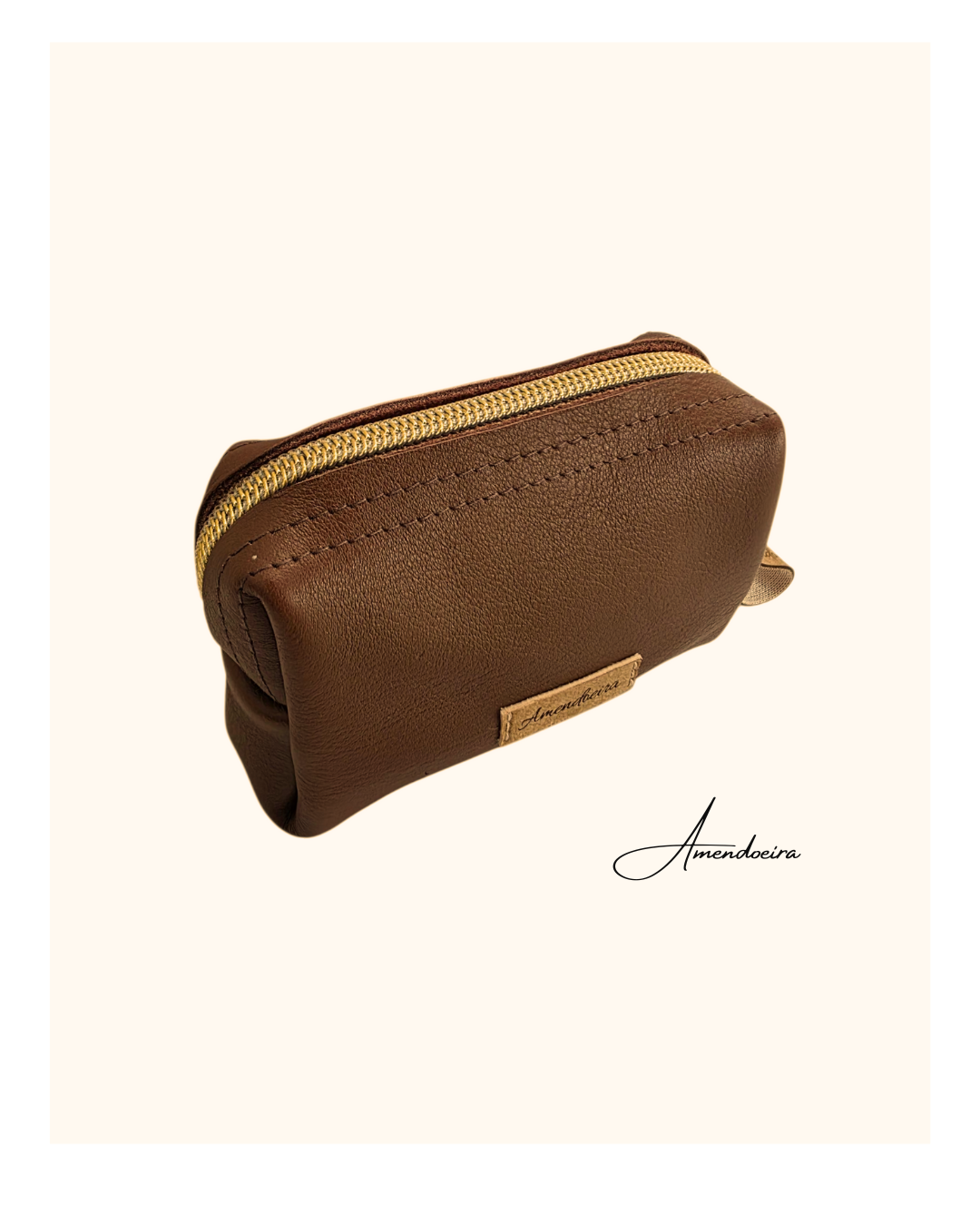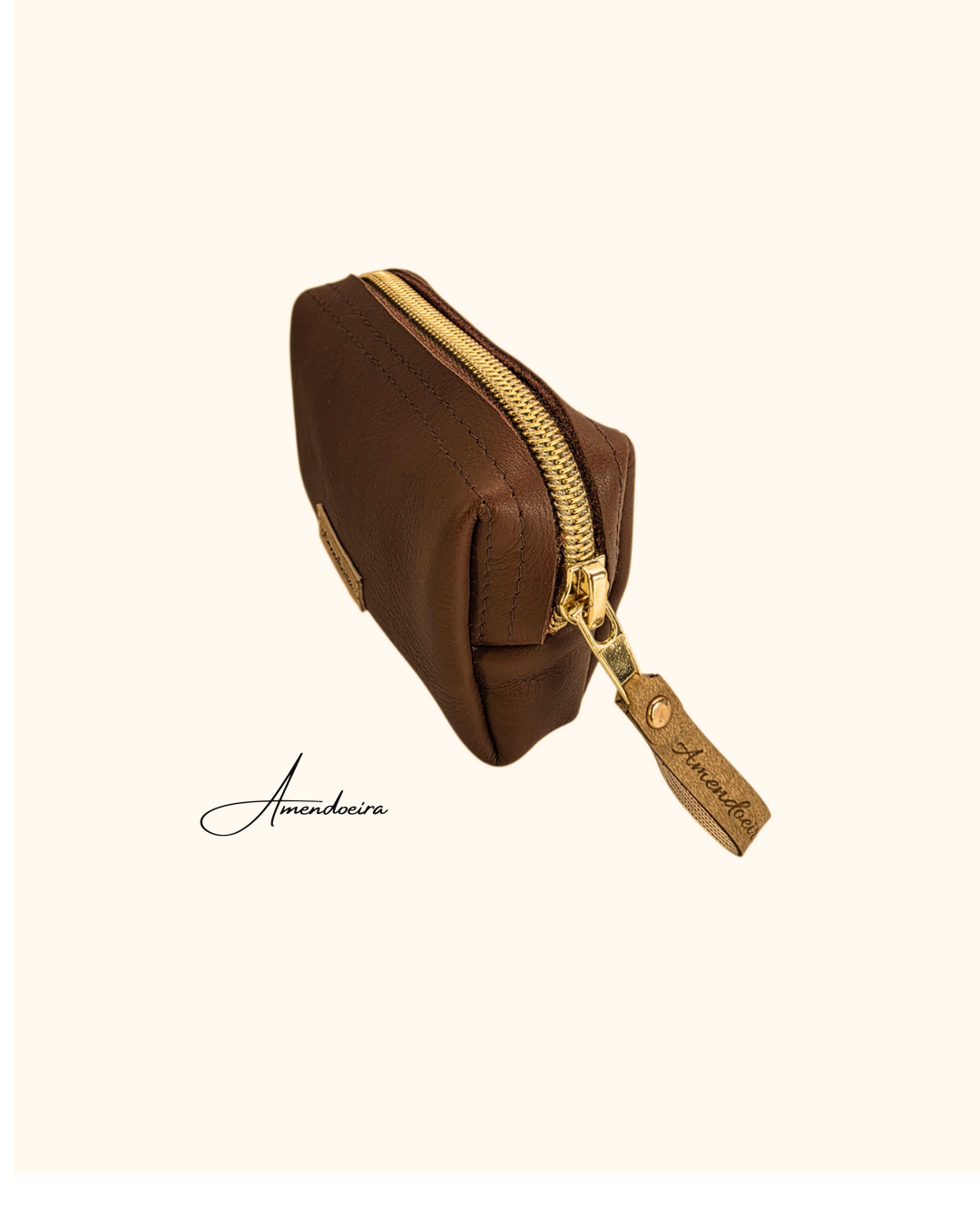Bolsa Atenas em pele- porta moedas e cartões - Brown