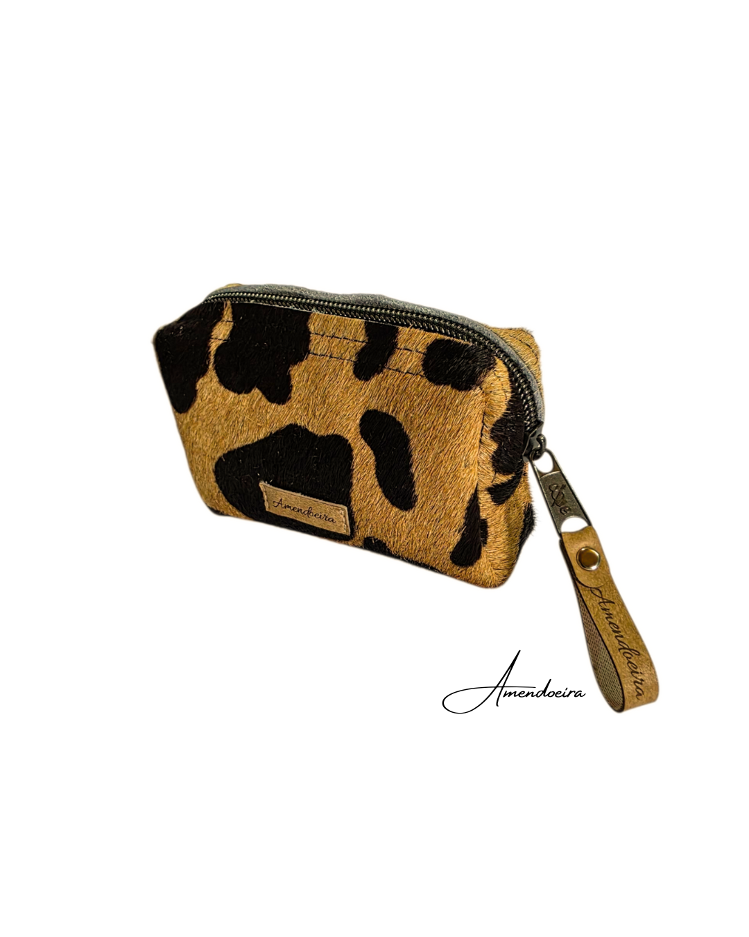 O fecho de correr com efeito metálico garante segurança no transporte de moedas e pequenos objetos, enquanto o formato compacto facilita o uso diário.