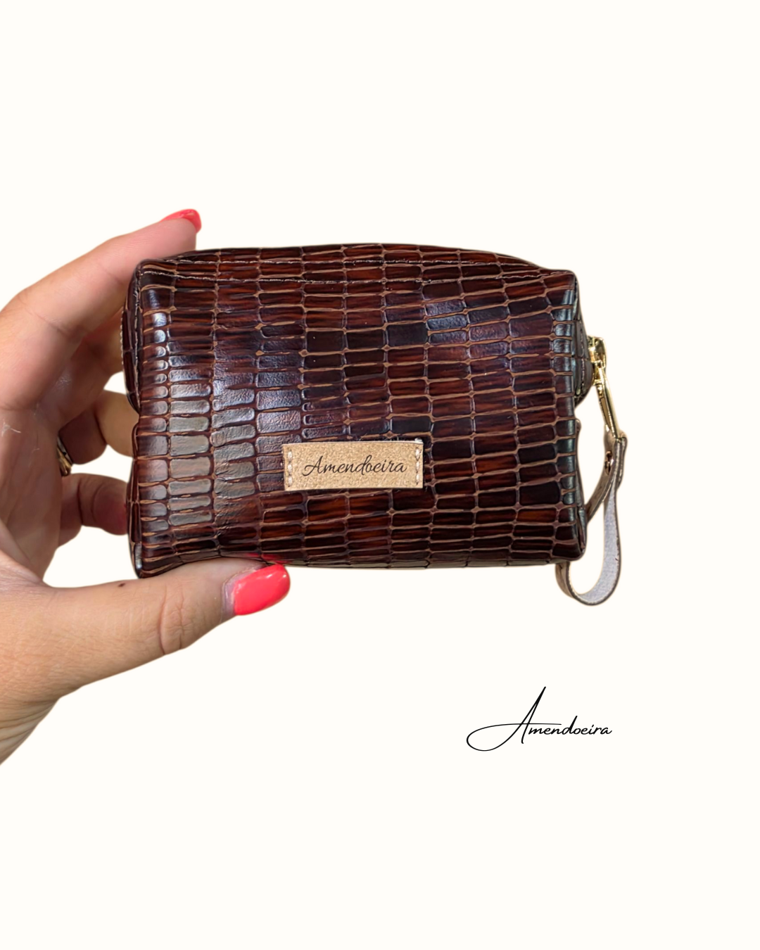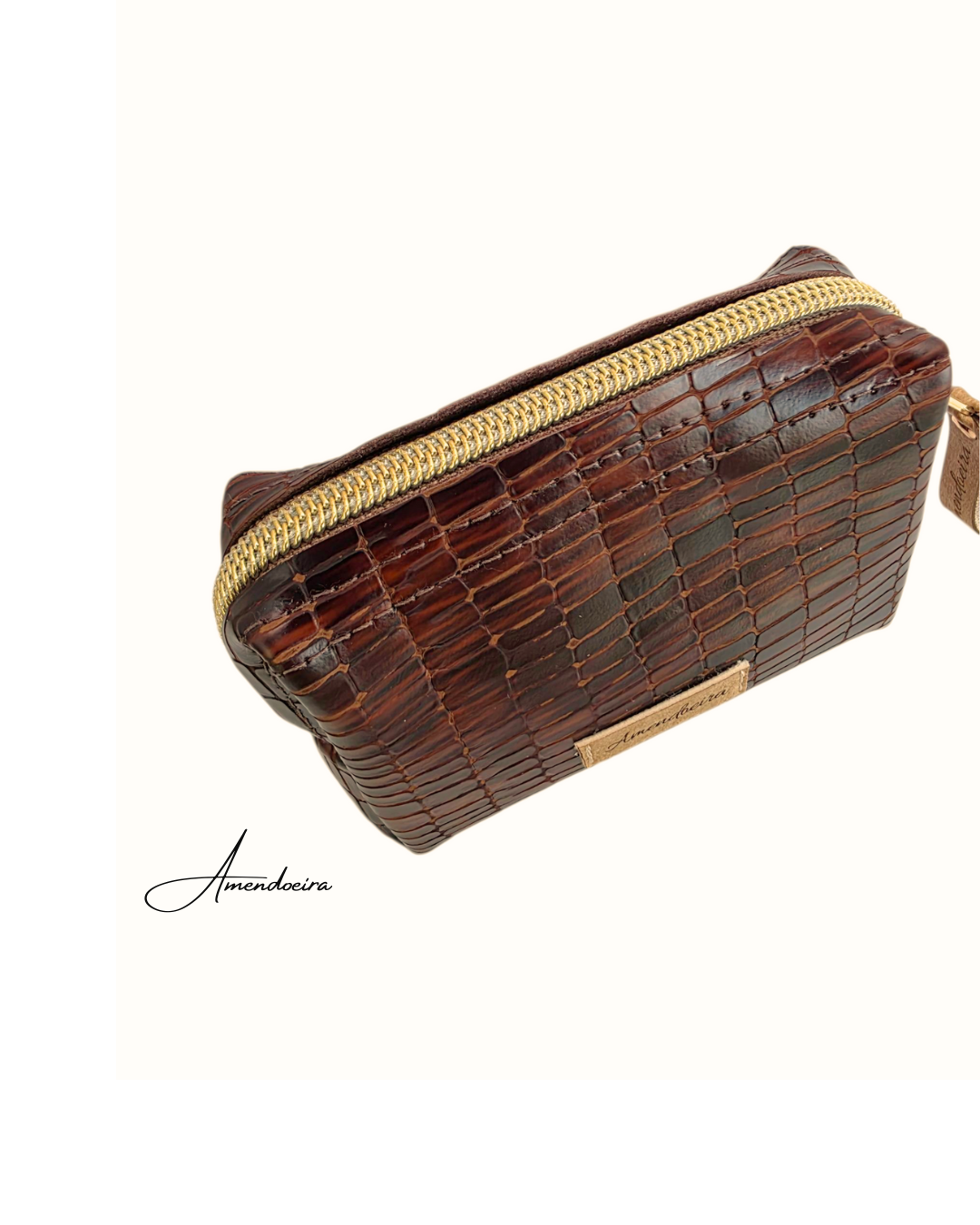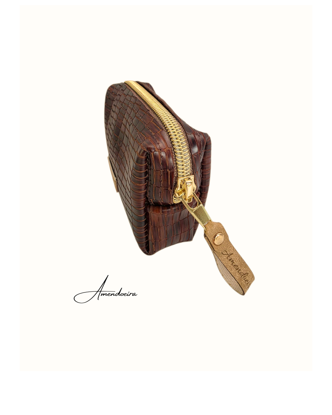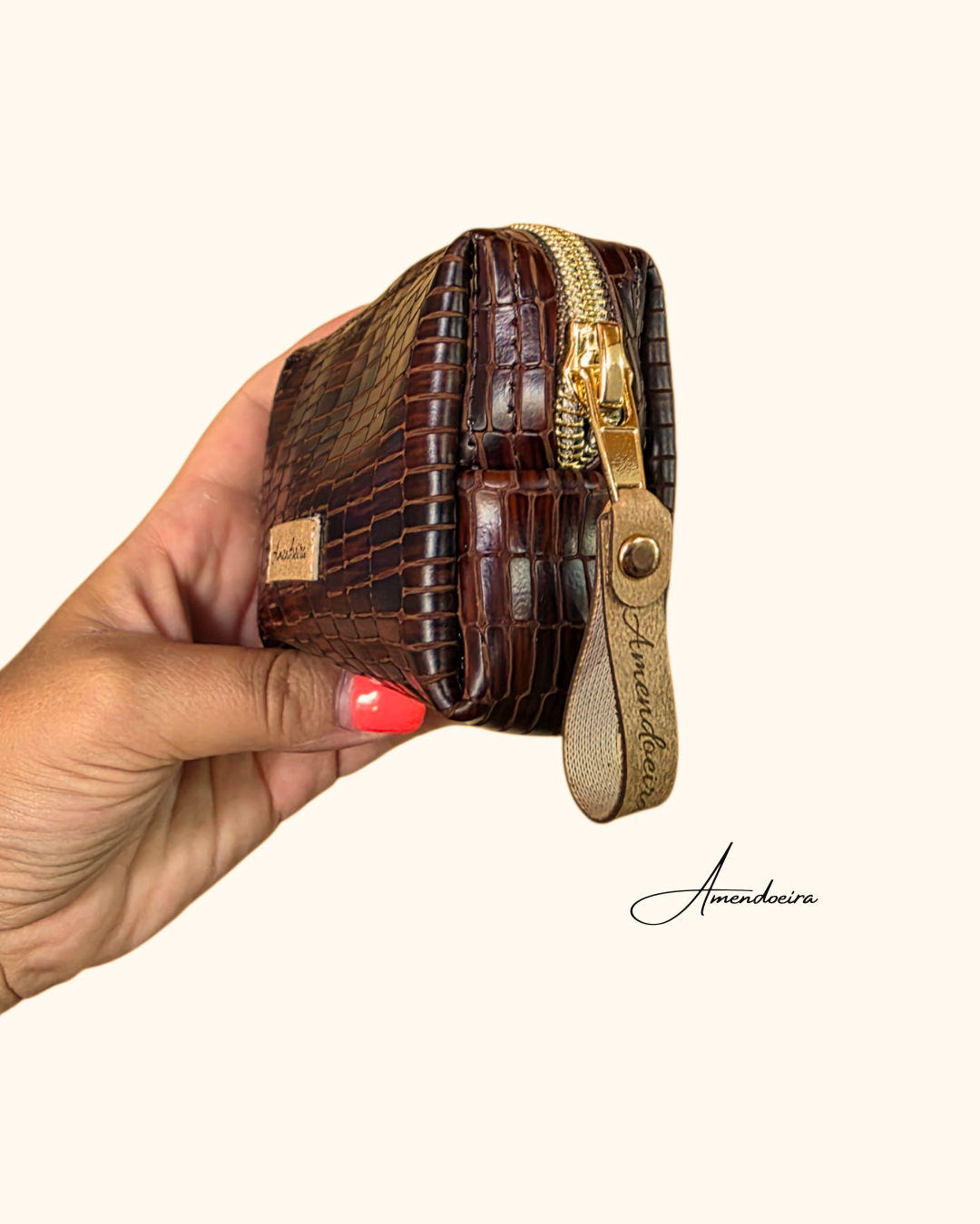 Bolsa Atenas em pele- porta moedas e cartões - Crocodile