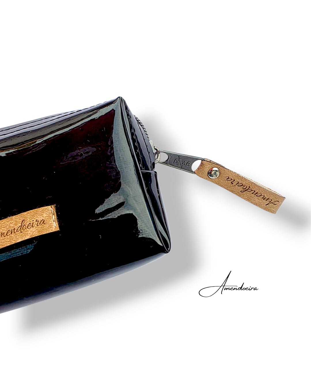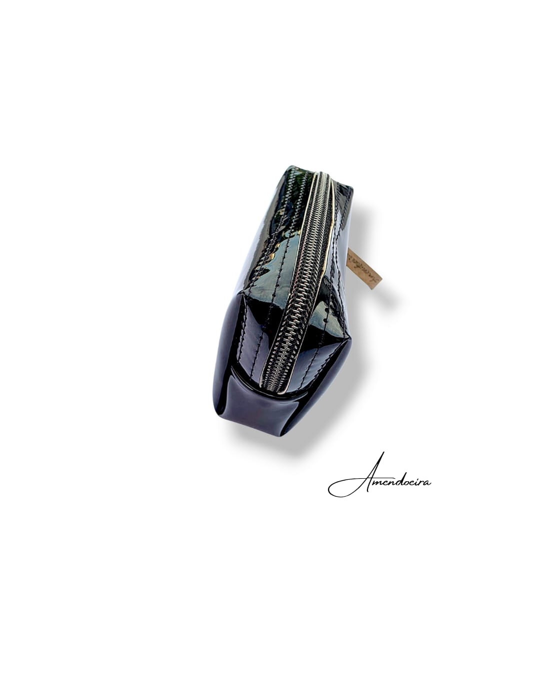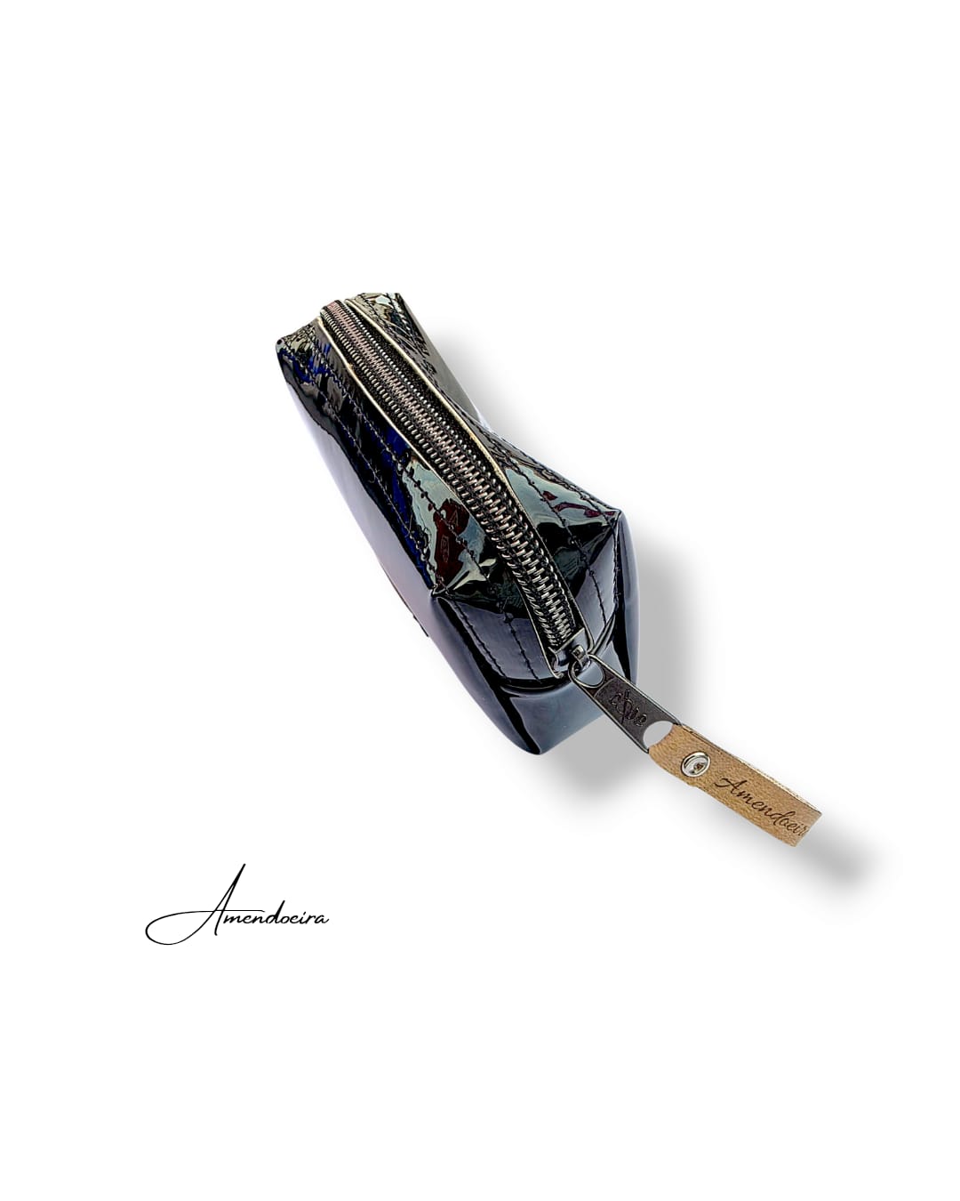 Dá um toque futurista e elegante ao teu dia com este porta-moedas preto brilhante da marca Amendoeira. Com um acabamento iridescente que reflete a luz em tons arco-íris, este acessório é perfeito para quem gosta de praticidade sem abrir mão de estilo.