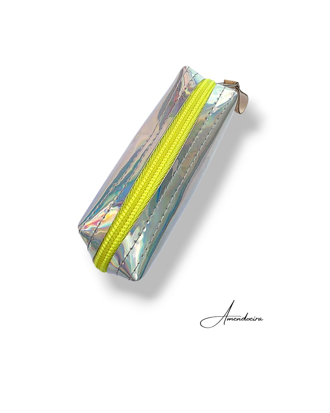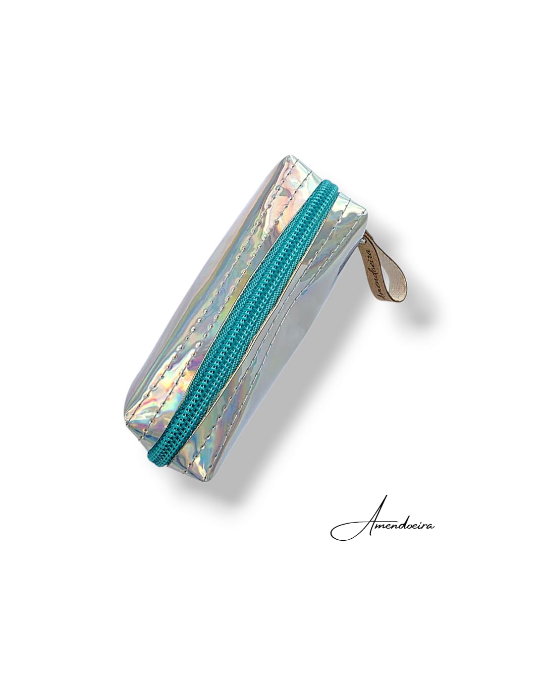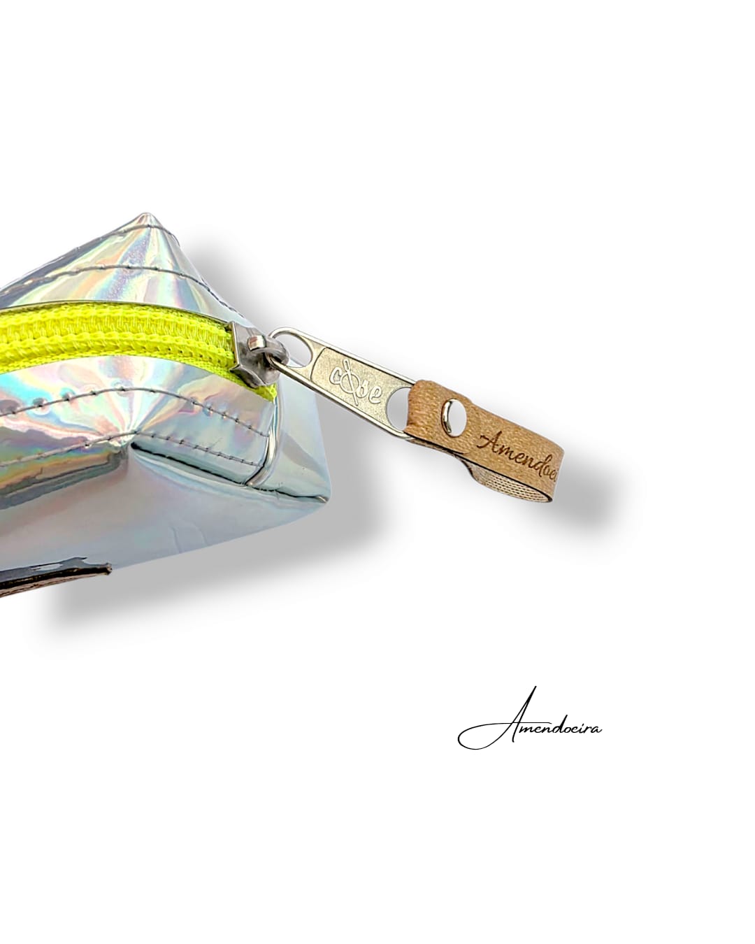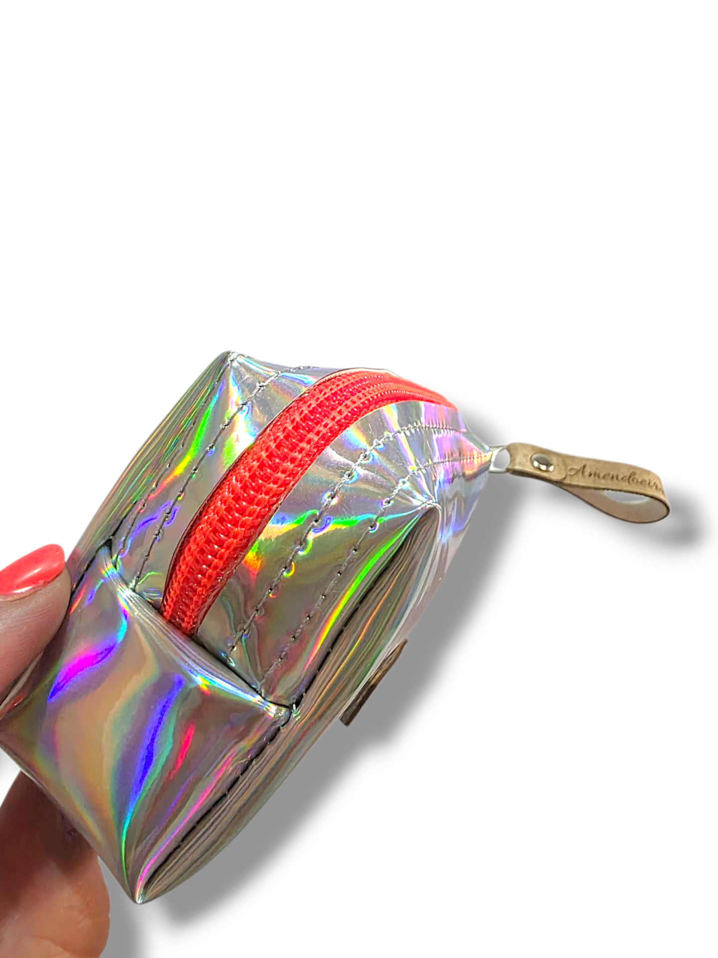 Dá um toque futurista ao teu dia com este porta-moedas holográfico da marca Amendoeira. Com um acabamento iridescente que reflete a luz em tons arco-íris, este acessório é perfeito para quem gosta de praticidade sem abrir mão de estilo.
