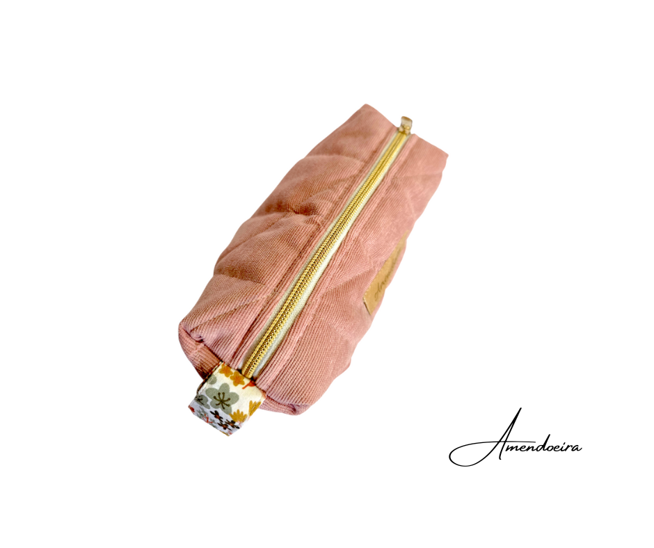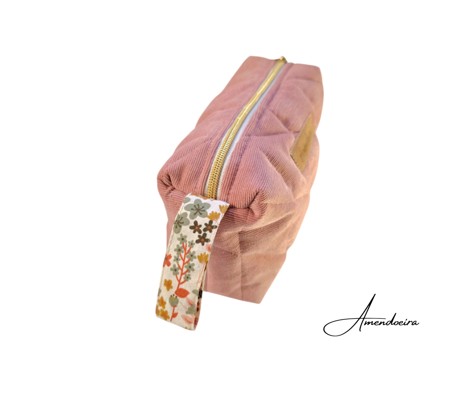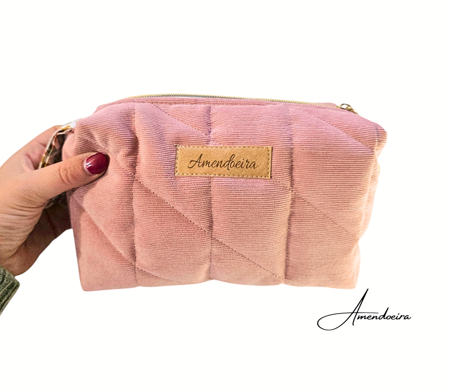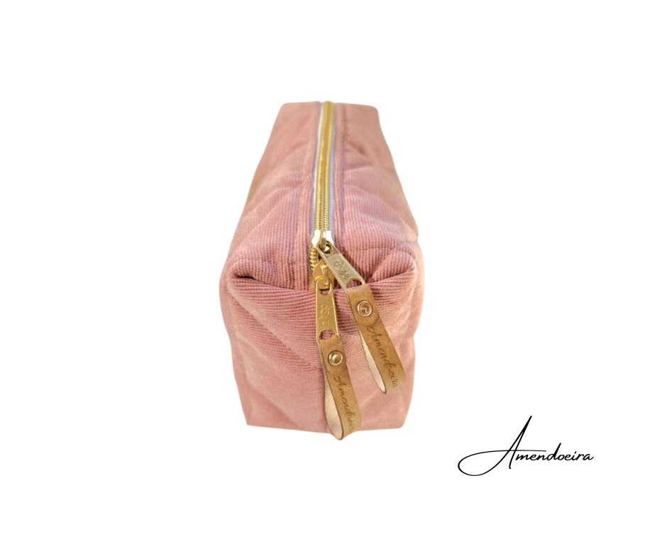 A nossa nécessaire Amora em bombazine e forro 100% algodão.O seu tom rosa suave transmite serenidade e elegância, enquanto o acabamento acolchoado lhe confere um toque confortável e sofisticado.