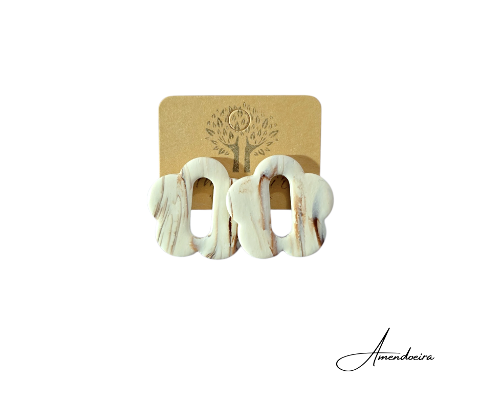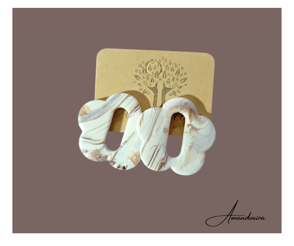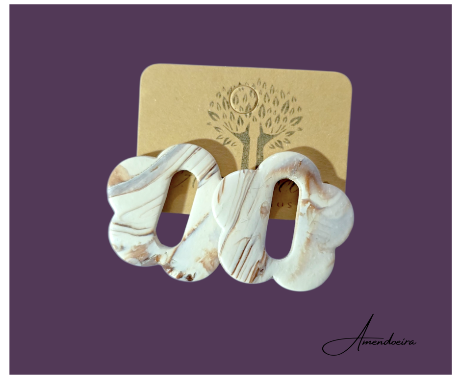 Brincos com padrão marmoreado único, totalmente feito à mão — cada peça é exclusiva e irrepetível. As nuances suaves e naturais criam um acessório elegante e contemporâneo.
