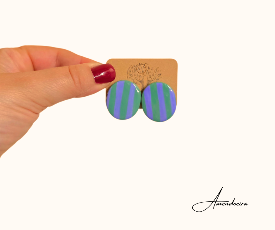 Brincos Dália- Riscas lilás e verde menta escuro
