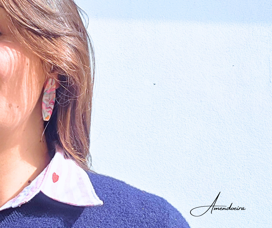 Os padrões diferenciam de par para par, tornando estes bincos únicos.