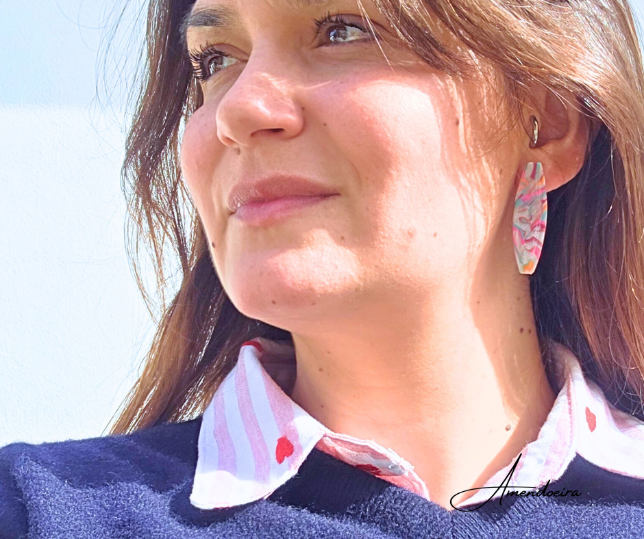 Brincos feitos à mão com um design inspirado numa prancha de surf. Não há 2 pares iguais, cada par é único.