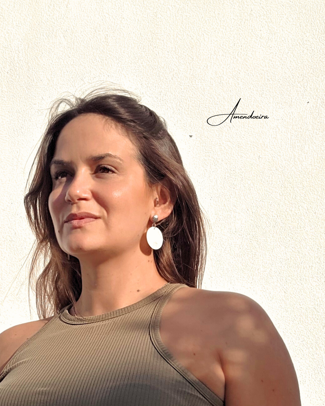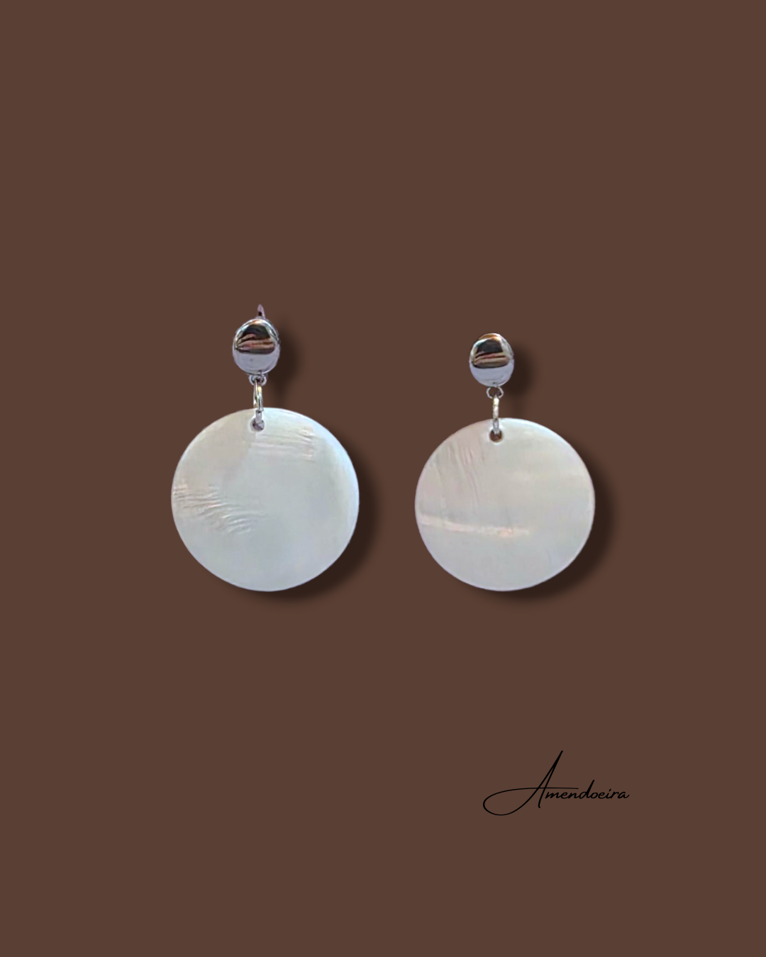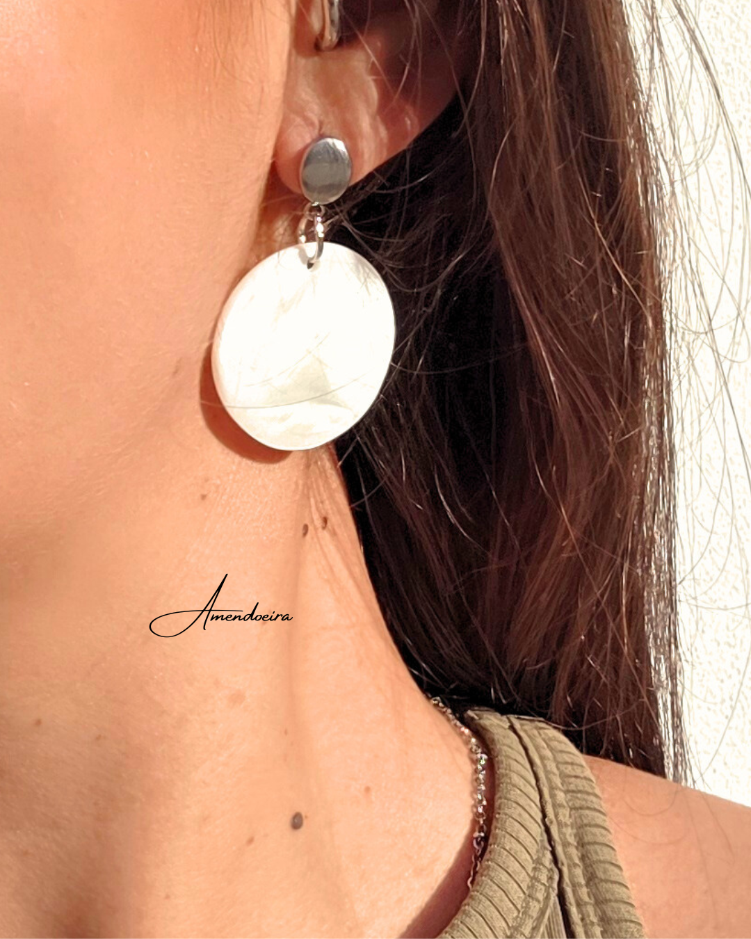 Brincos que refletem a simplicidade da luz e do encanto do pendente da Madre Pérola Natural.