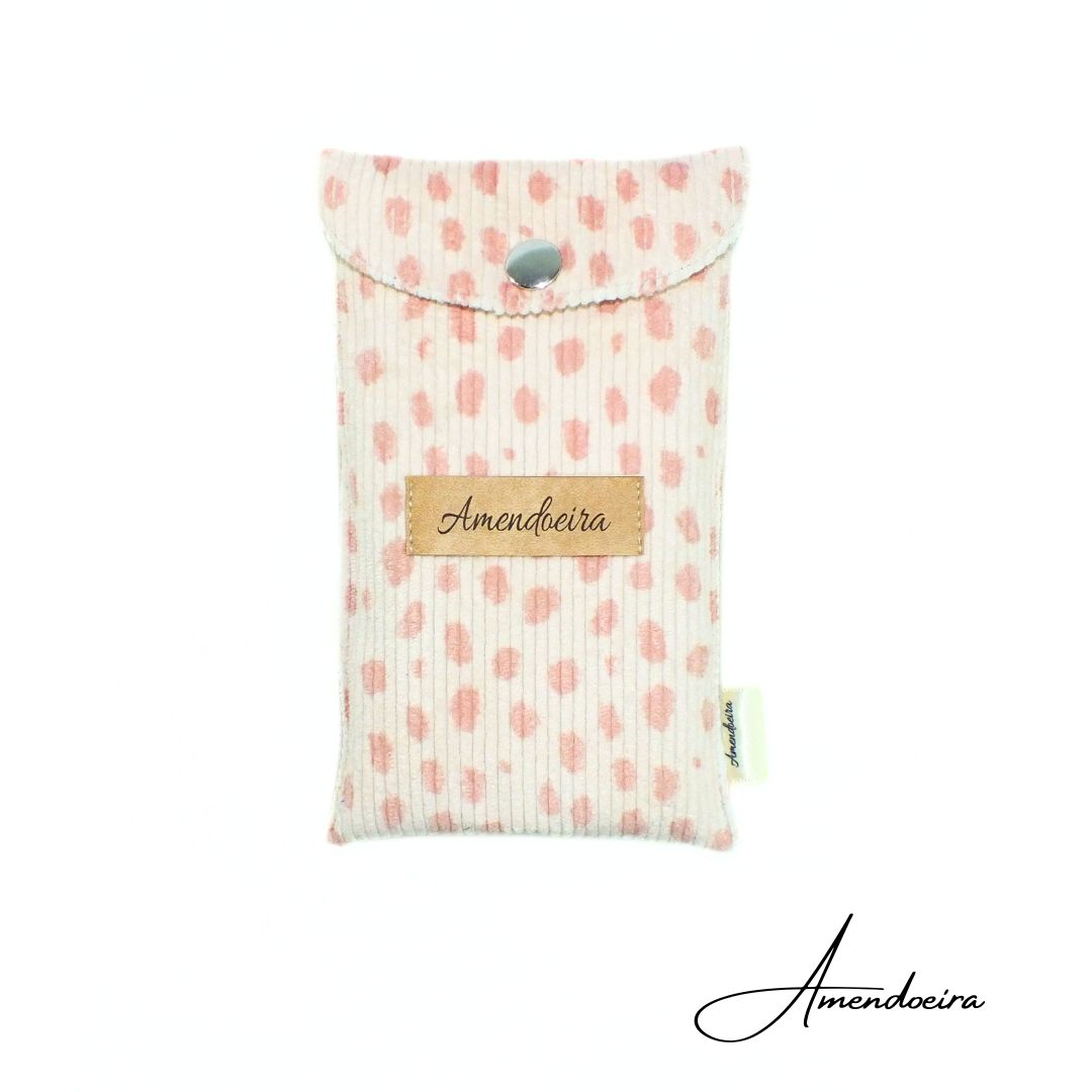 Bolsa para telemóvel ou para canetas, exterior em bombazine e com forro em algodão bege.