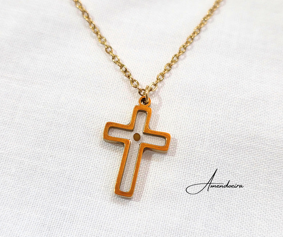 Com um pendente em forma de cruz dourada, este colar é perfeito para quem acredita que até a fé pode mover montanhas.