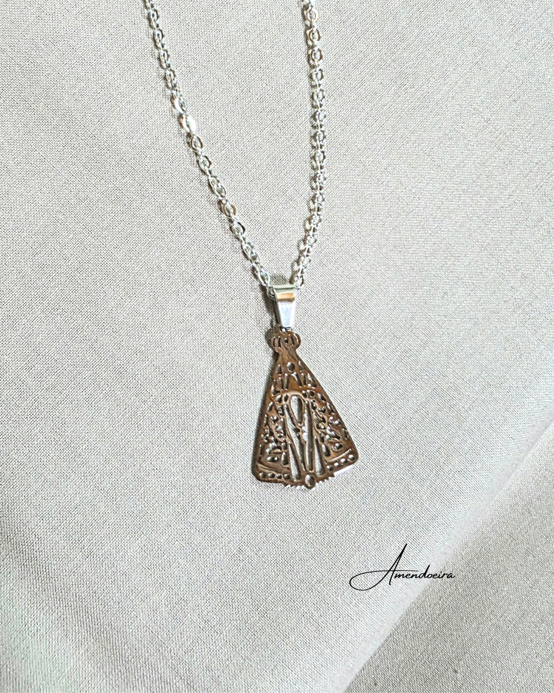 Feito com delicadeza, é mais do que um acessório: é um amuleto de fé que acompanha cada passo com ternura e esperança.