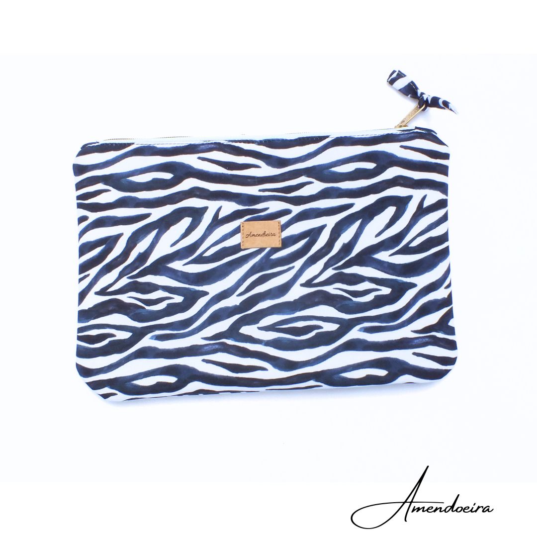 - Bolsa com tecido exterior padrão zebra impermeàvel e forro preto impereável