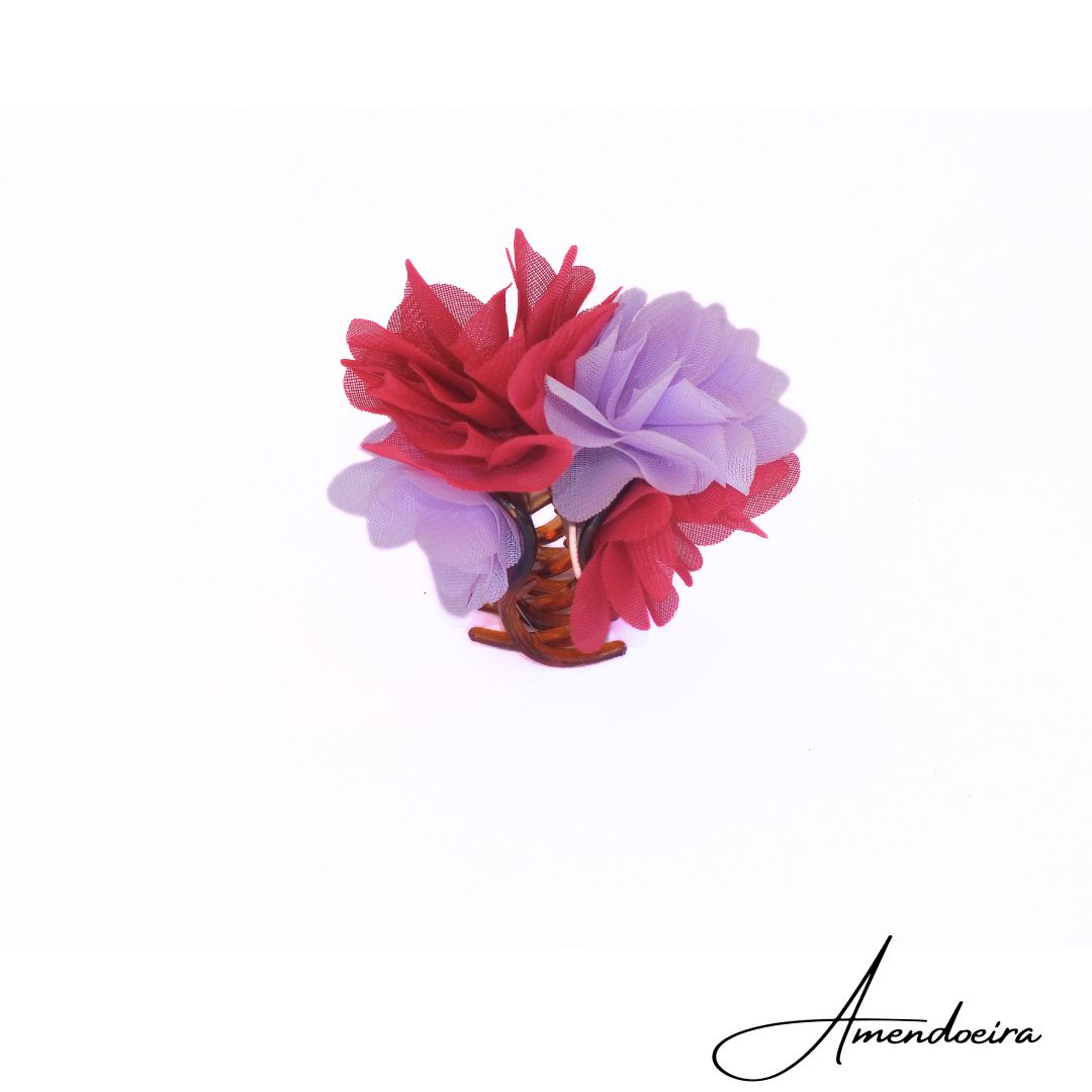 Mola feita à mão com flor em tecido tule.