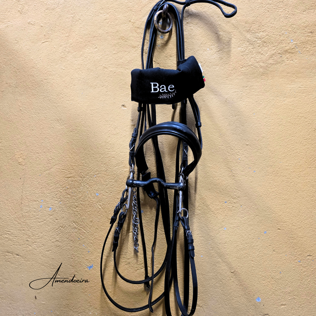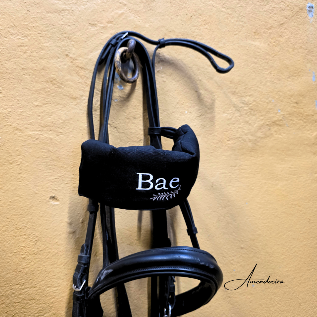 Pode ser bordada com o nome do cavaleiro ou do cavalo.